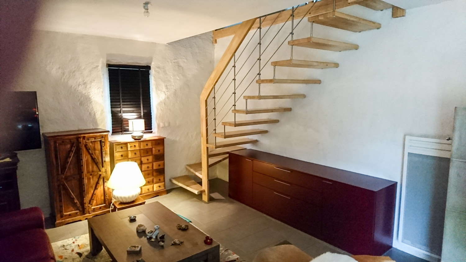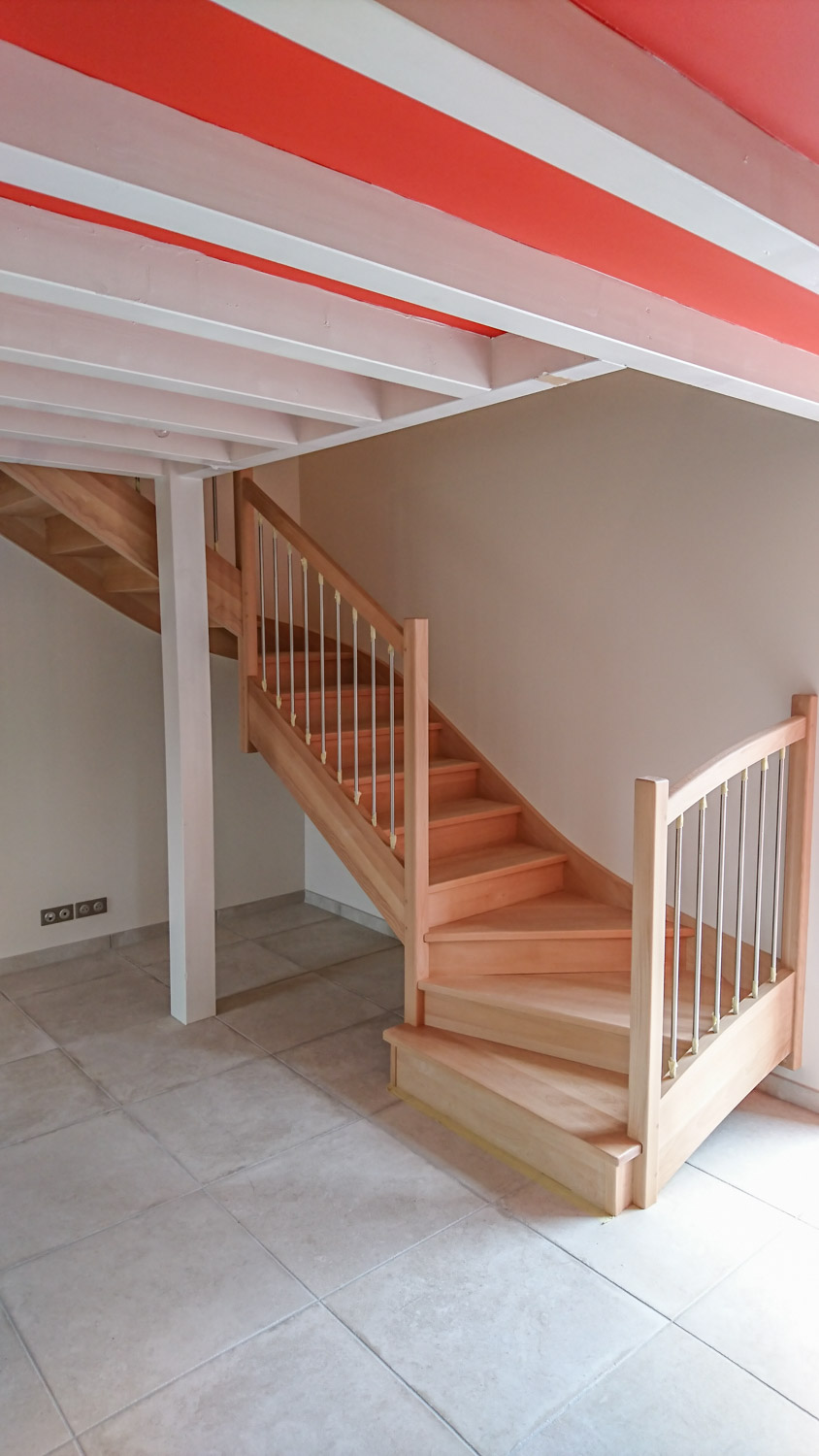 Limon bois à la française ou à l’anglaise-remplissage des rampes avec balustres, lisses horizontales bois-tubes aciers laqués ou inox diamètre aux choix, avec ou sans contremarche, poteaux carrés ou rectangulaires, main-courante avec ou sans gorge, crémaillères coté cloison.